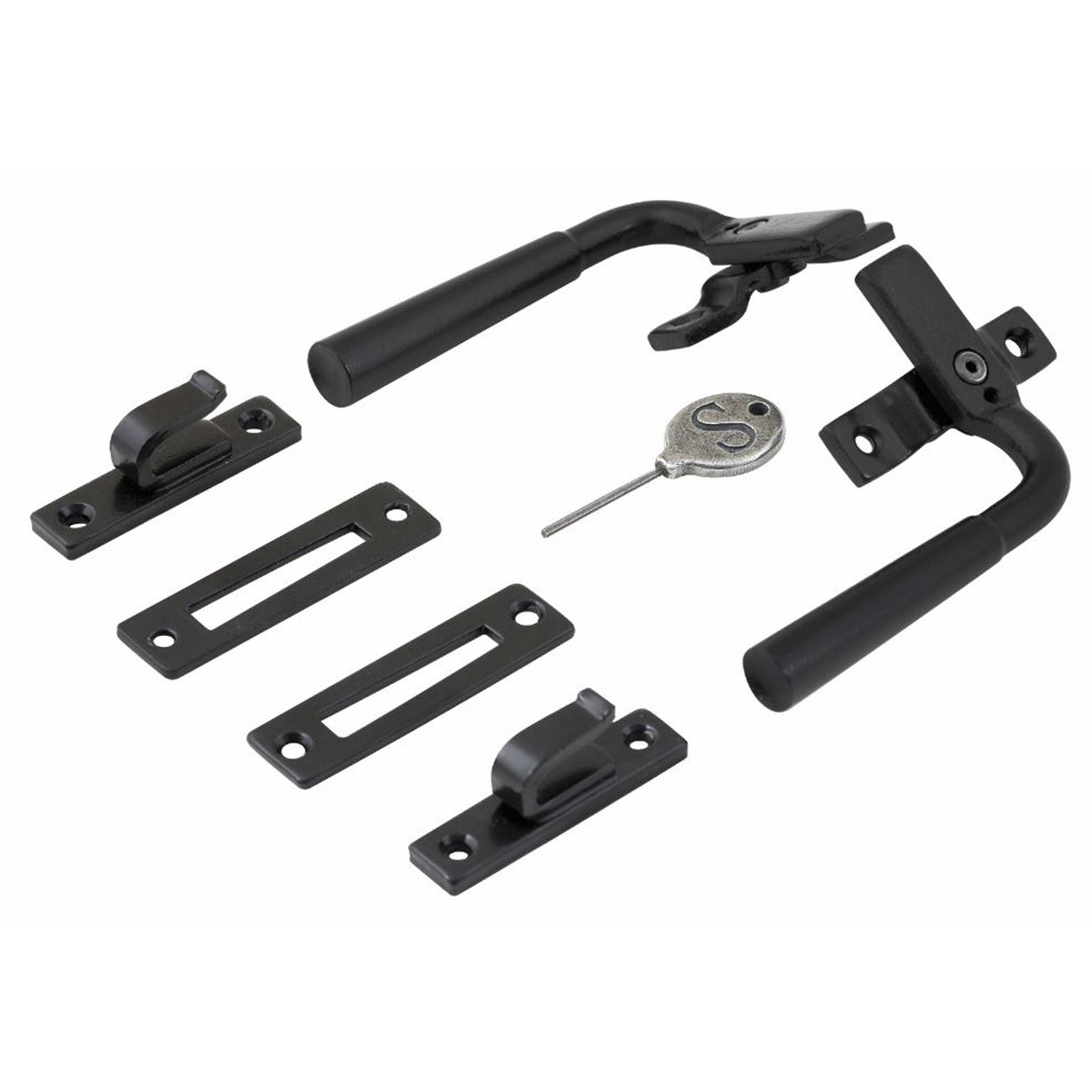 Suitable for use with wooden windows, casement fasteners are typically installed to the vertical frame of a window to securely locks a window into its closed position. Simply turn the handle to engage the lock into the provided keep.